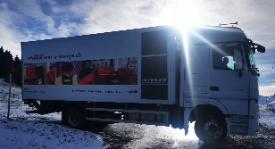 Der nächste Umzug erfolgt in das zweistöckige Lager im Vogelsang bei Turgi und verfügt über 2’000m 2 Fläche und eine Werkstatt. Das Team wächst um 4 weitere Mitglieder und der Fuhrpark erhält nun neben dem 3.5t mit Anhänger einen grossen Bruder mit 18t.